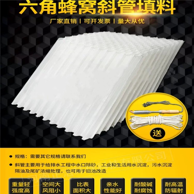蜂窩斜管填料濕周大,水力半徑小,層流狀態(tài)好,顆粒沉降不受紊流干擾。 當(dāng)蜂窩斜管填料管長(zhǎng)為一米時(shí),有效負(fù)荷按3-5噸//米.時(shí)設(shè)計(jì)。VO控制在2.5-3.0毫米/秒范圍內(nèi),出水水質(zhì)較佳!≡谌∷诓捎貌Aт摲涓C斜管,管長(zhǎng)2.0-3.0米時(shí),可在50-100公斤/米3泥沙含量的高濁度中安全運(yùn)行處理。
